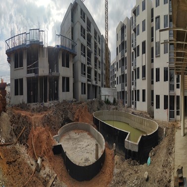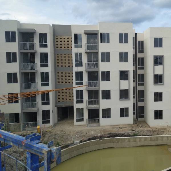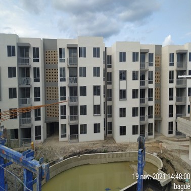 Descripción: El proyecto consta de (17) diecisiete torres de (5) cinco pisos, que equivale a (340) trescientos cuarenta unidades independientes de vivienda, (1) un salón comunal, (1) un tanque de almacenamiento de agua potable, (1) un cuarto técnico del proyecto, (1) un cuarto de bombas del tanque, (1) un cuarto de bombas de piscina, una portería, (1) un cuarto de basuras, diferentes zonas verdes, (147) ciento cuarenta y siete parqueaderos.